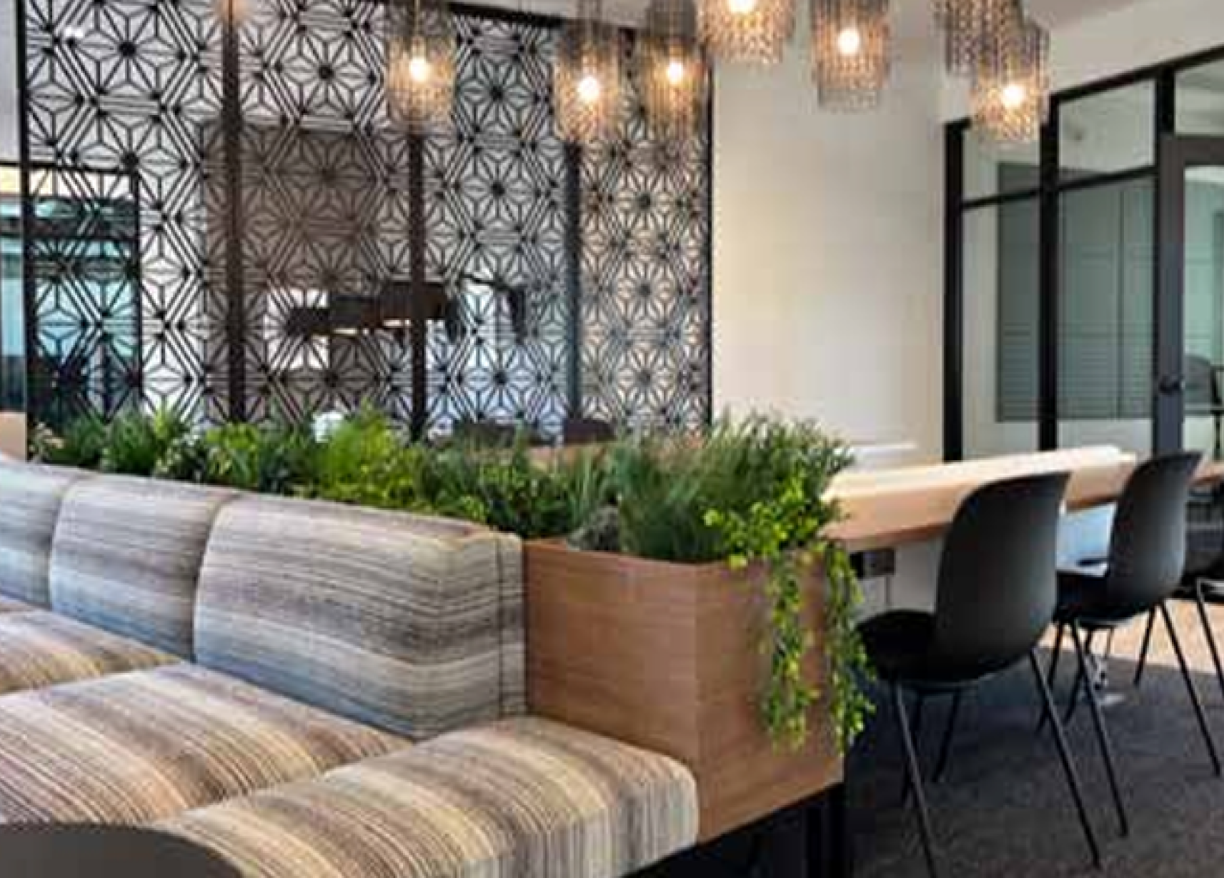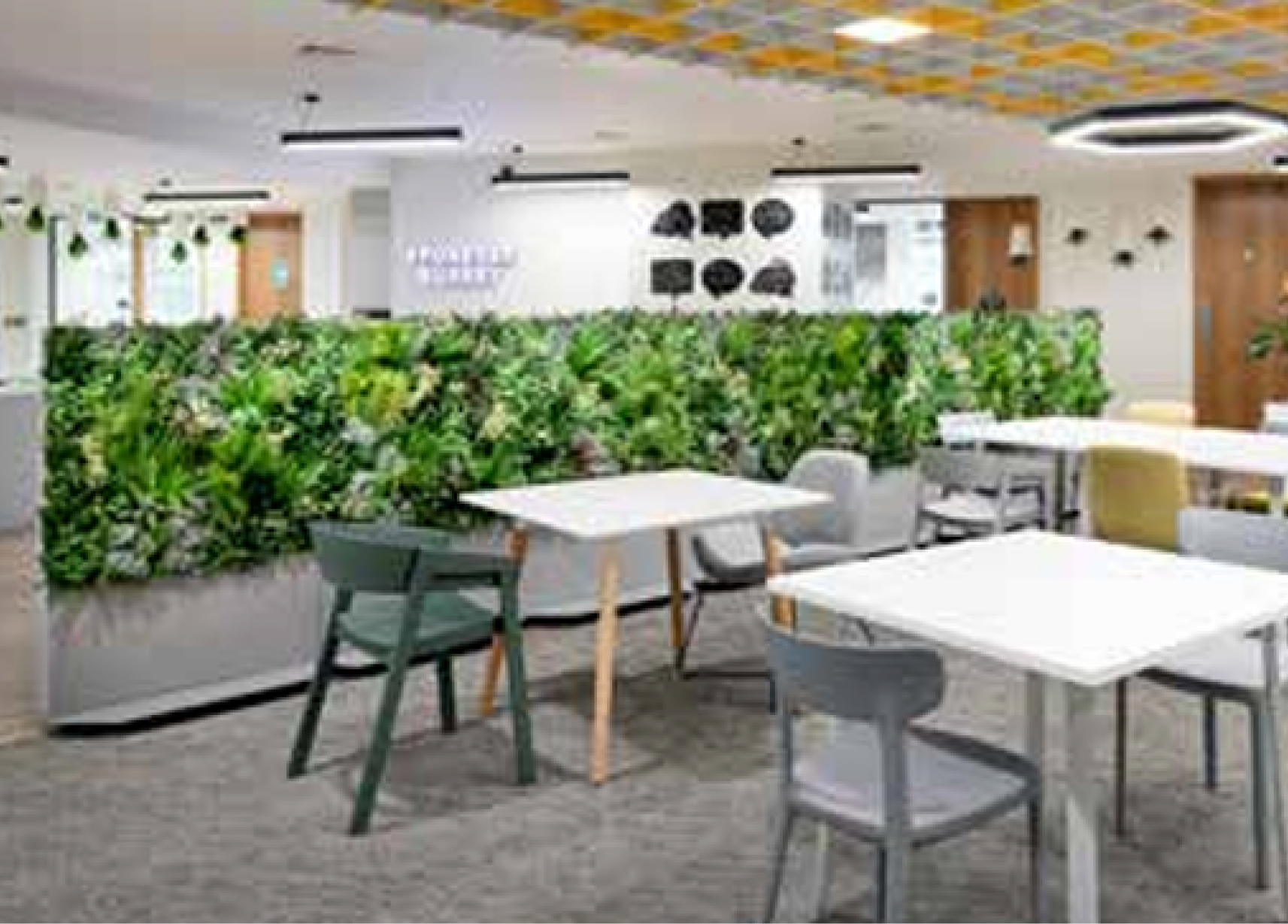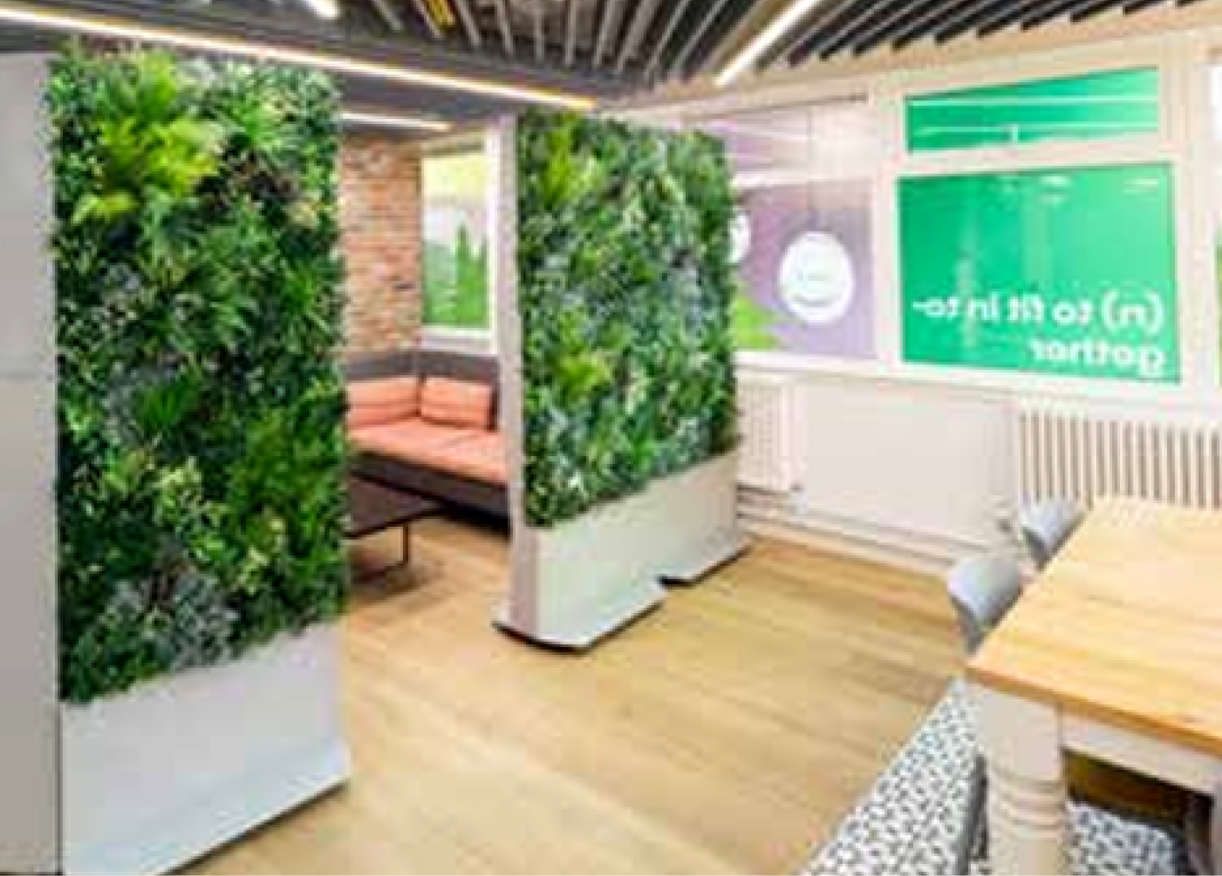 Modular green wall partitions. The Foliascreen® features our Artificial Green Wall panels and high-quality upholstered fabric.