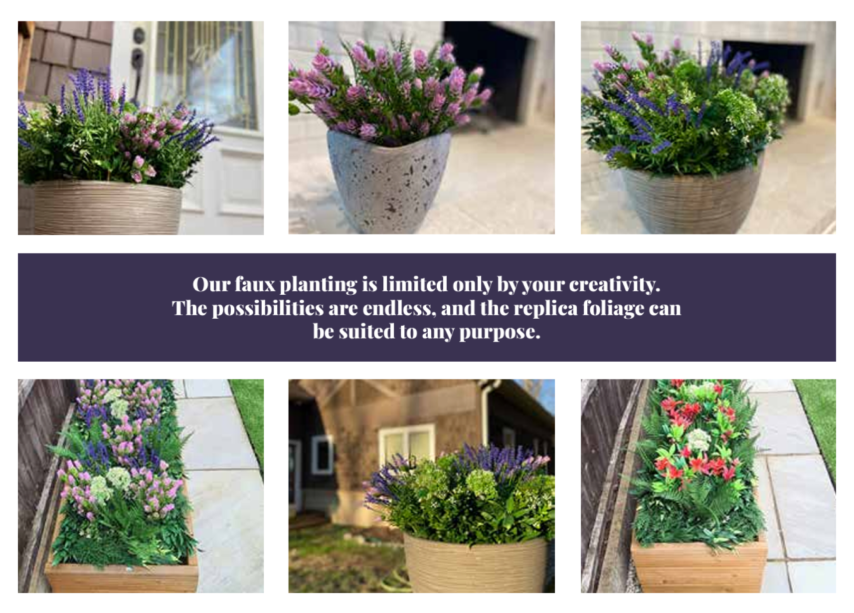 ✔ Custom and bespoke colours available ✔ Freedom – no restrictive pots ✔ Ultra-realistic artificial foliage ✔ 100% pure colour pigments ✔ 5-year warranty ✔ Unique fully UV stable and fire rated material ✔ Effortless mix & match